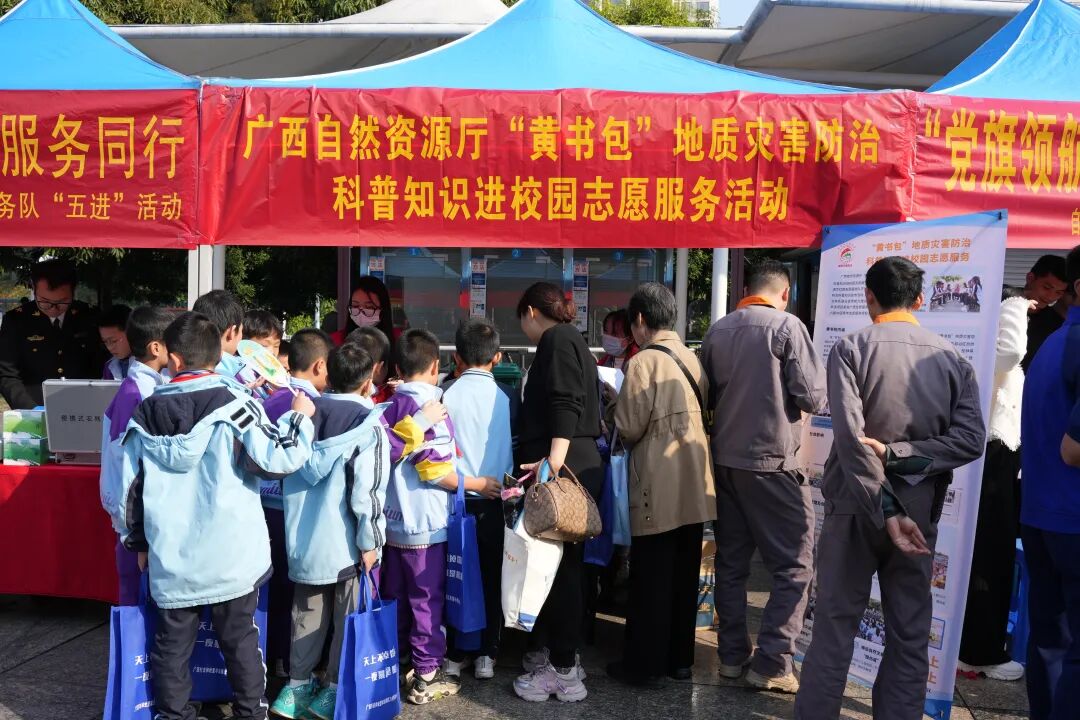 联展活动设有科普科教、便民利民、健康义诊、共建平安、政策咨询、绿水青山等六大主题志愿服务区,内容丰富,形式多样。自治区自然资源厅以“黄书包”地质灾害防治科普知识宣传为主题向现场的师生、群众仔细讲解地质灾害的定义、产生原因、灾害类型、紧急避险等科普知识。在活动现场,自治区自然资源厅志愿者分发地质灾害防治宣传手册、开展地质灾害防治有奖问答等,师生、群众积极参与,现场气氛热烈。