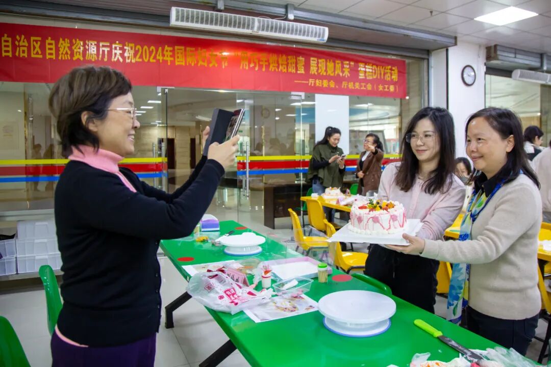 据悉,本次蛋糕DIY活动是自治区自然资源厅在3月份开展“巾帼奋进展风采 铿锵熠熠绽芳华”为主题的庆祝国际妇女节系列活动之一。3月中下旬,还将举办“自然巾帼创新功 表达她心声”汇报座谈会,“推优评先树榜样 点赞她力量”厅红旗集体个人评选,“家是温暖的港湾 助力她成长”家庭教育讲座,“学百年巾帼英雄 致敬她风华”观影分享会等一系列妇女活动,更好地激发妇女干部积极投身于自然资源改革事业的热情。