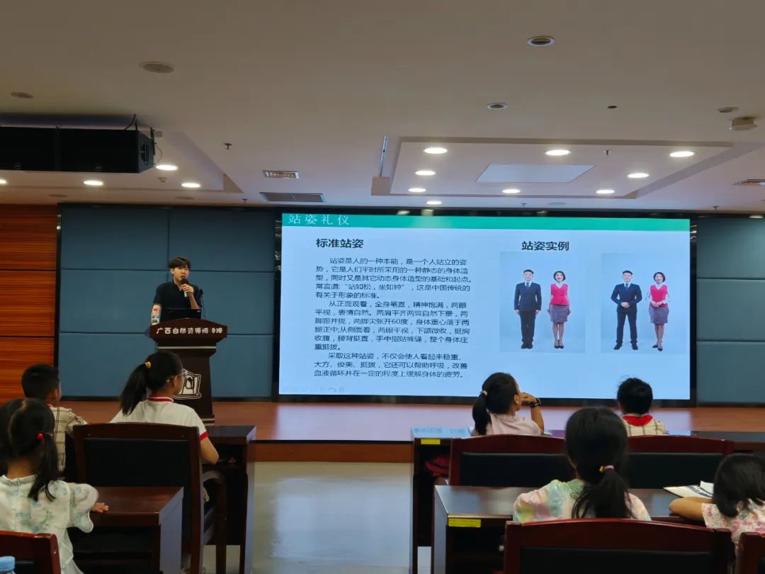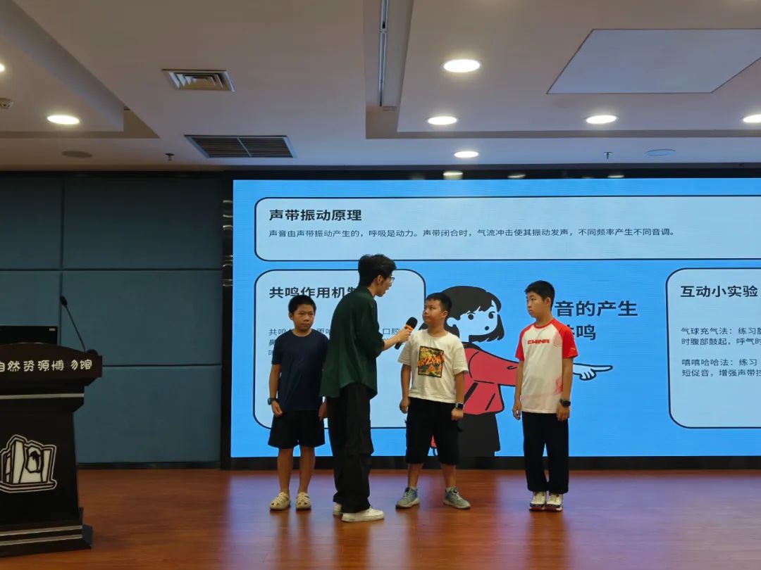 7月25日的考核现场格外热闹,“小小讲解员”们轮番登场:讲解地球奥秘条理清晰,介绍古生物化石充满敬畏,说起广西矿产俨然“小专家”……他们的声音虽显稚嫩,却洋溢着真诚与自信。