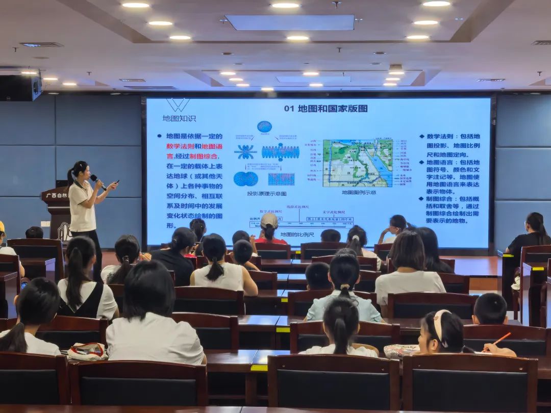 在“版图知识微课堂”上,来自广西地图院的志愿者讲师们以“正确使用地图,一点也不能错”为主题,穿插“荆轲刺秦王”等版图小故事,深入浅出地讲解地图的基本知识、国家版图的历史演变、地图常见错误等内容,强调“地图虽小,分毫不能少”“万里山河,一寸不让”的理念。