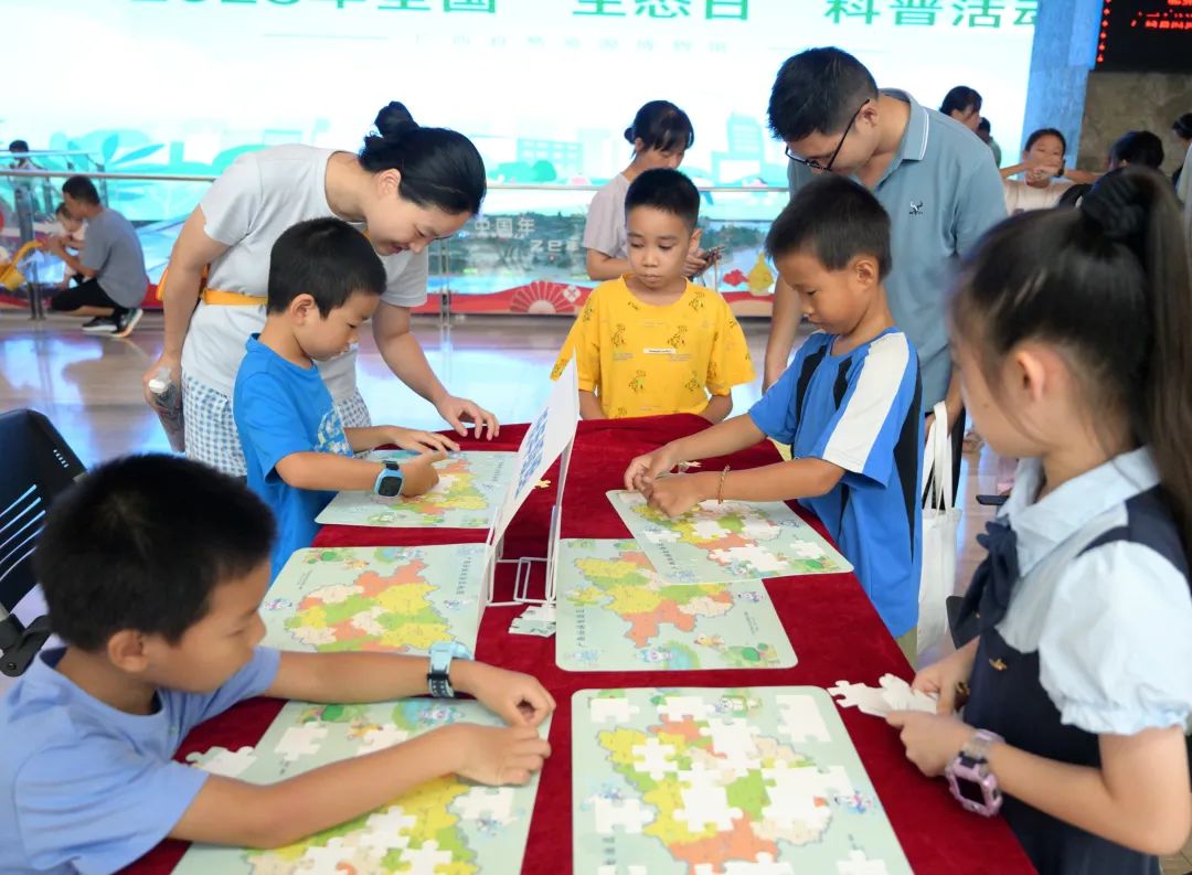 活动现场还设置了地图拼图、测绘法宣传非遗漆扇体验、地图填色等趣味环节。广西自然资源博物馆一楼大厅化身为“版图知识乐园”,孩子们通过创意填色感知中国与广西的地理轮廓,借助拼图游戏巩固课堂所学,在轻松愉快的氛围中深化了对国家版图的理解。
